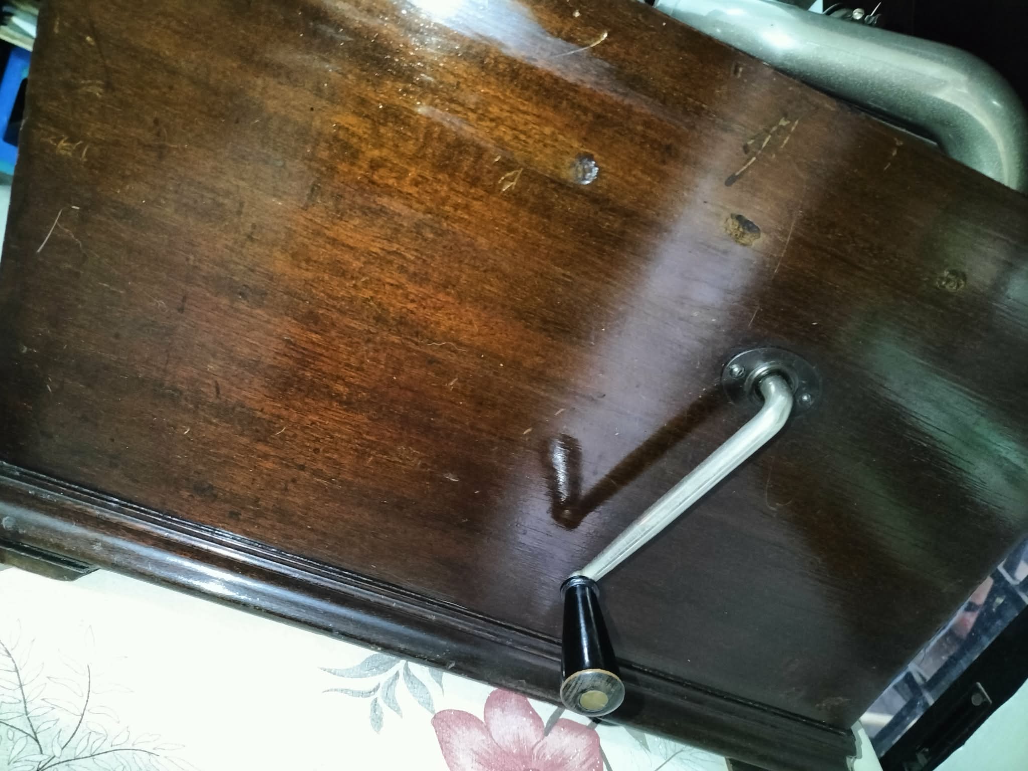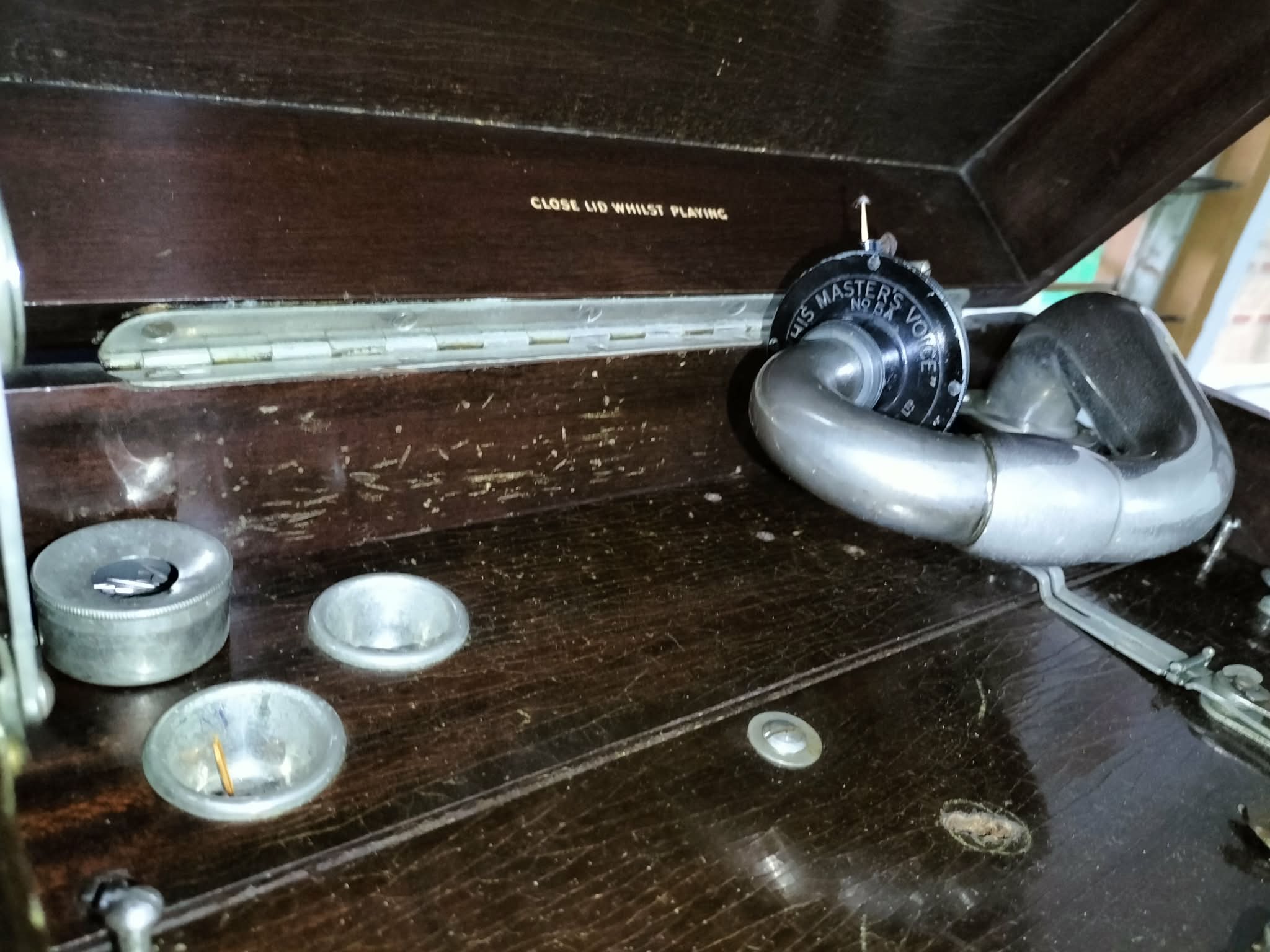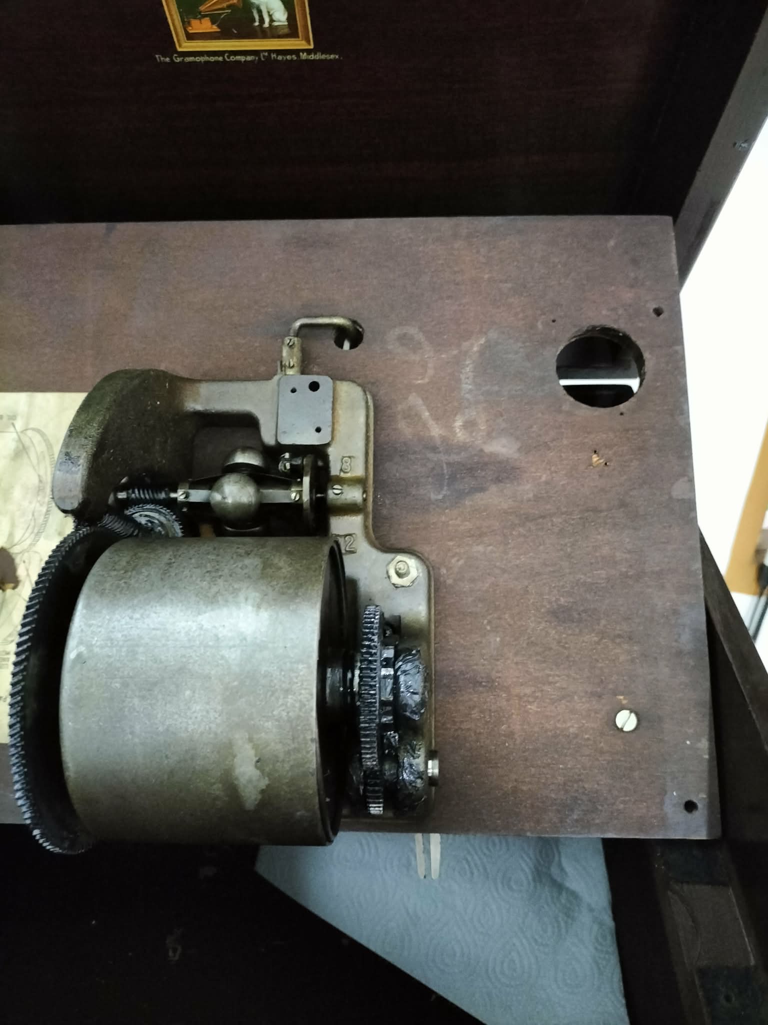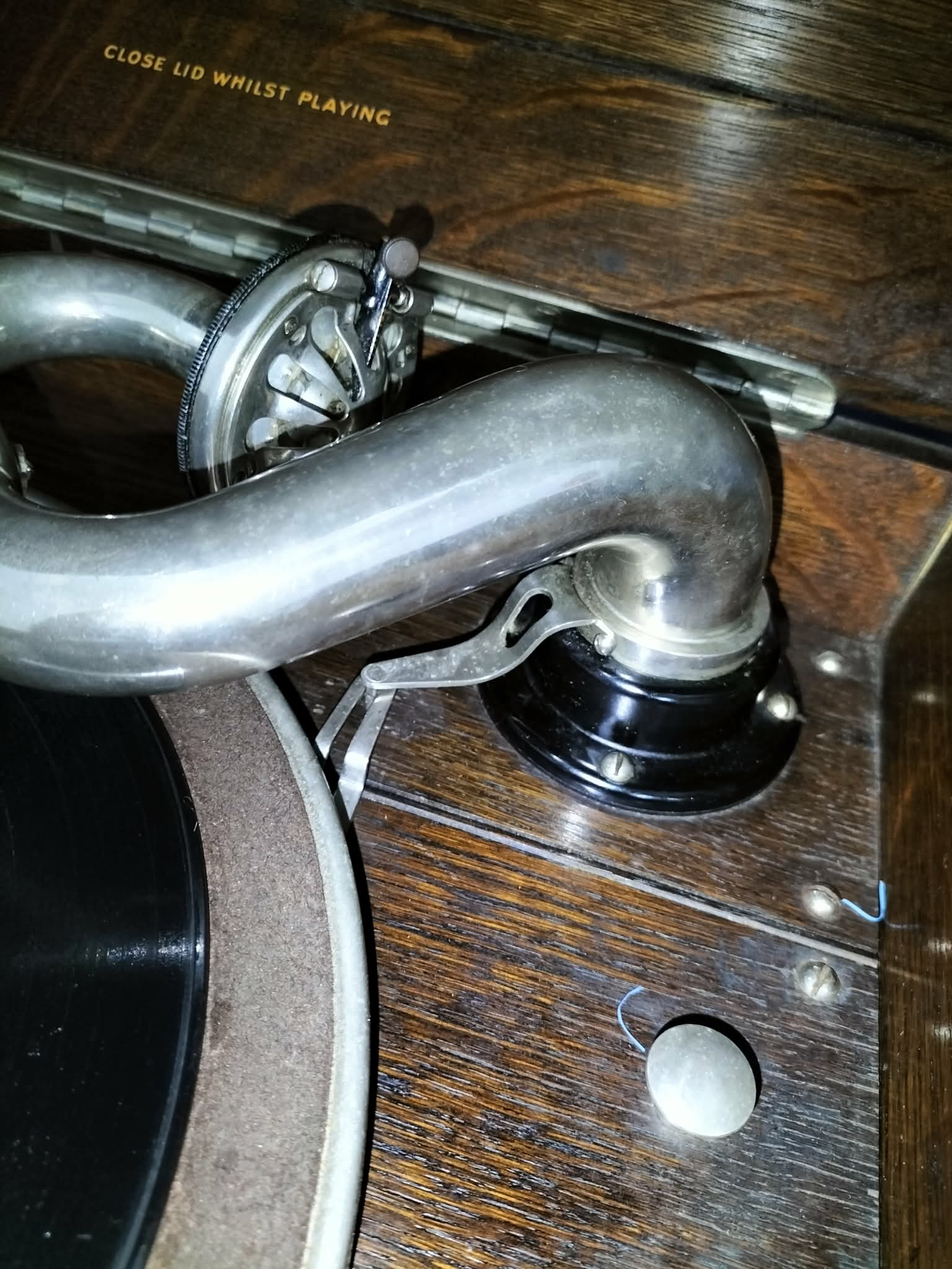 (1) The wood cabinet may have been refinished as it's unusually bright. It does not have that kind of tiger stripes as I usually see on HMV 130 to be confident that those are made of oak. This rather has consistent parallel patterns. Is it more likely to be mahogany wood? Was this sensible and was HMV 130 offered in mahogany wood?