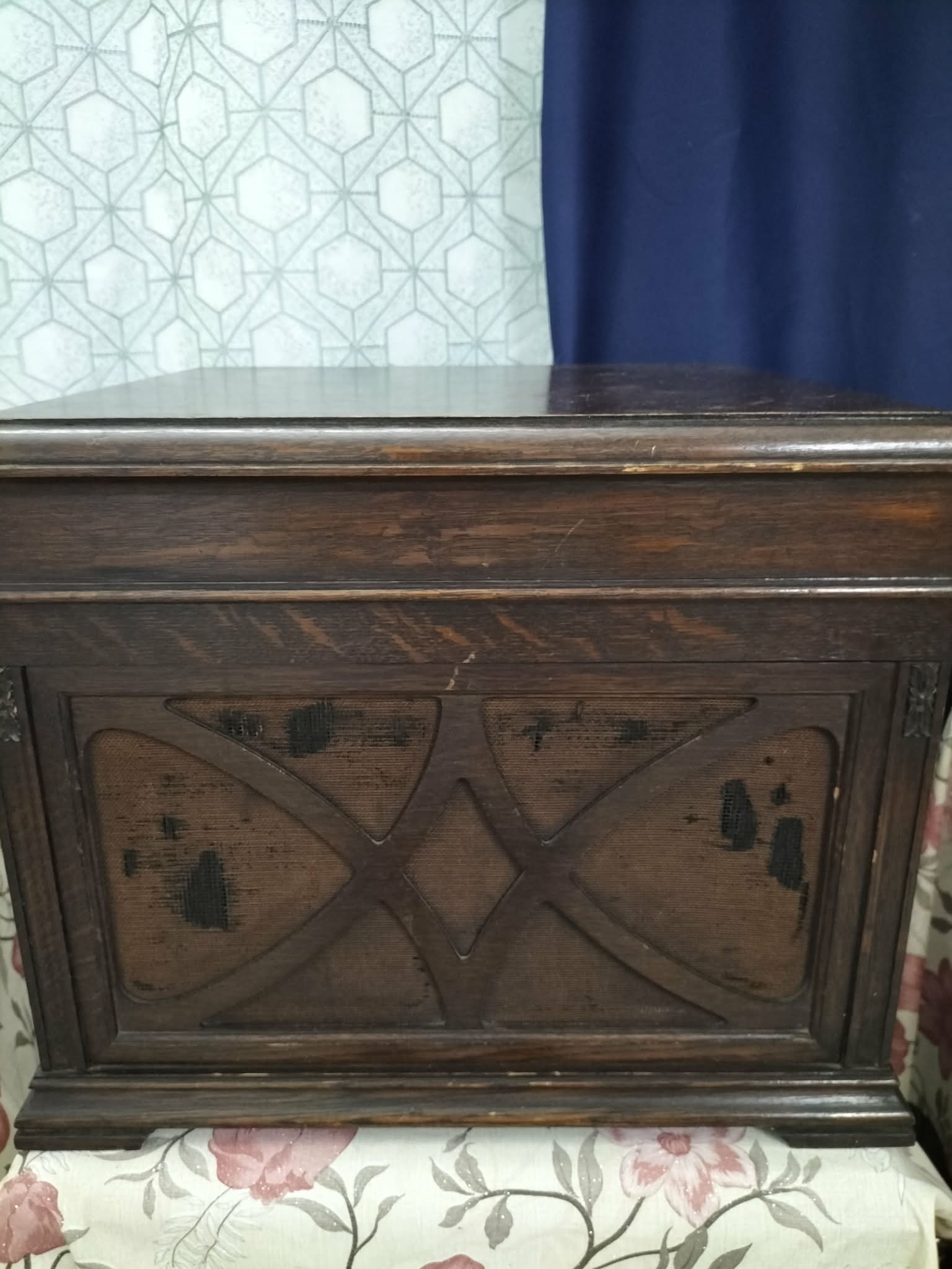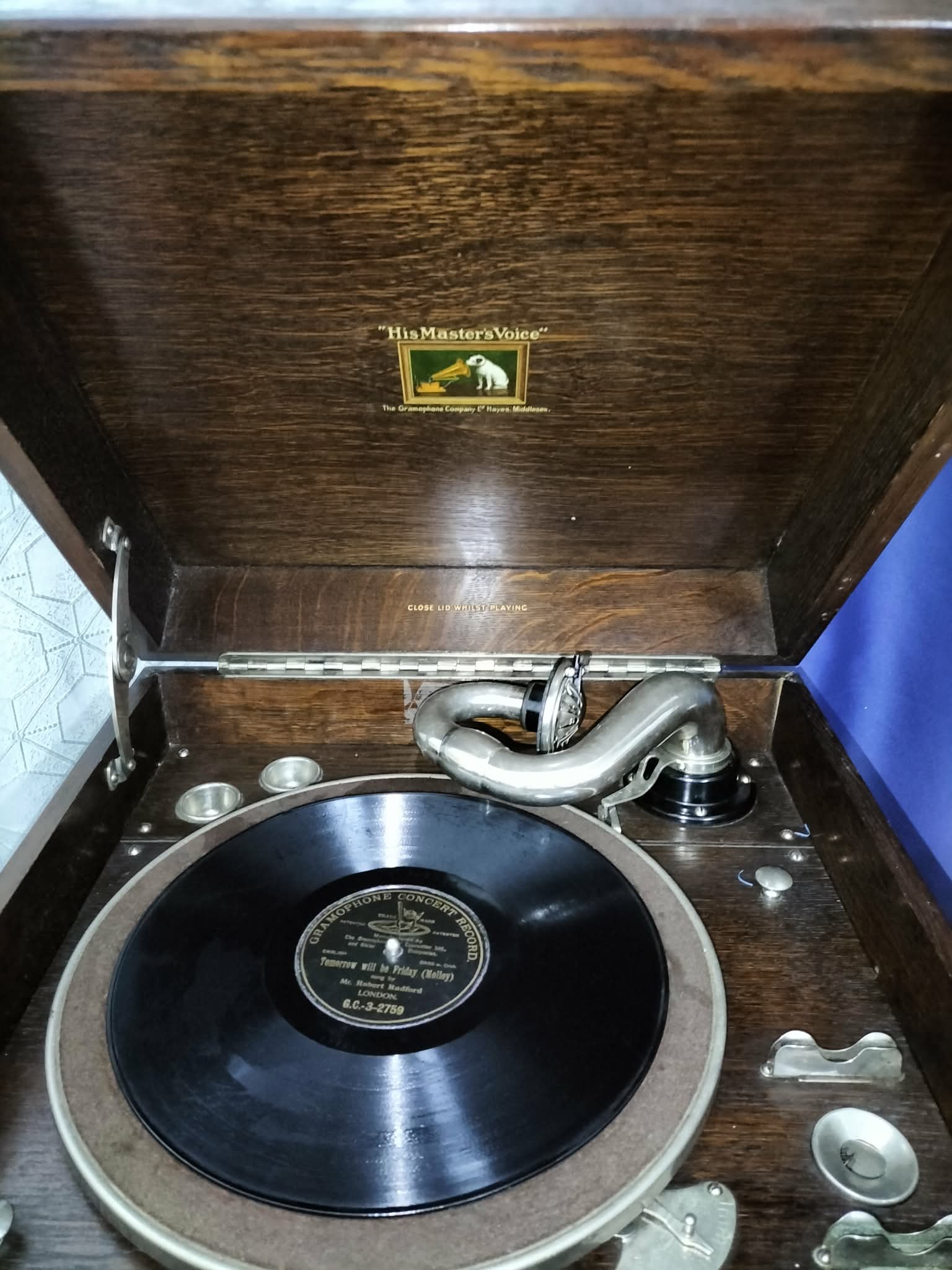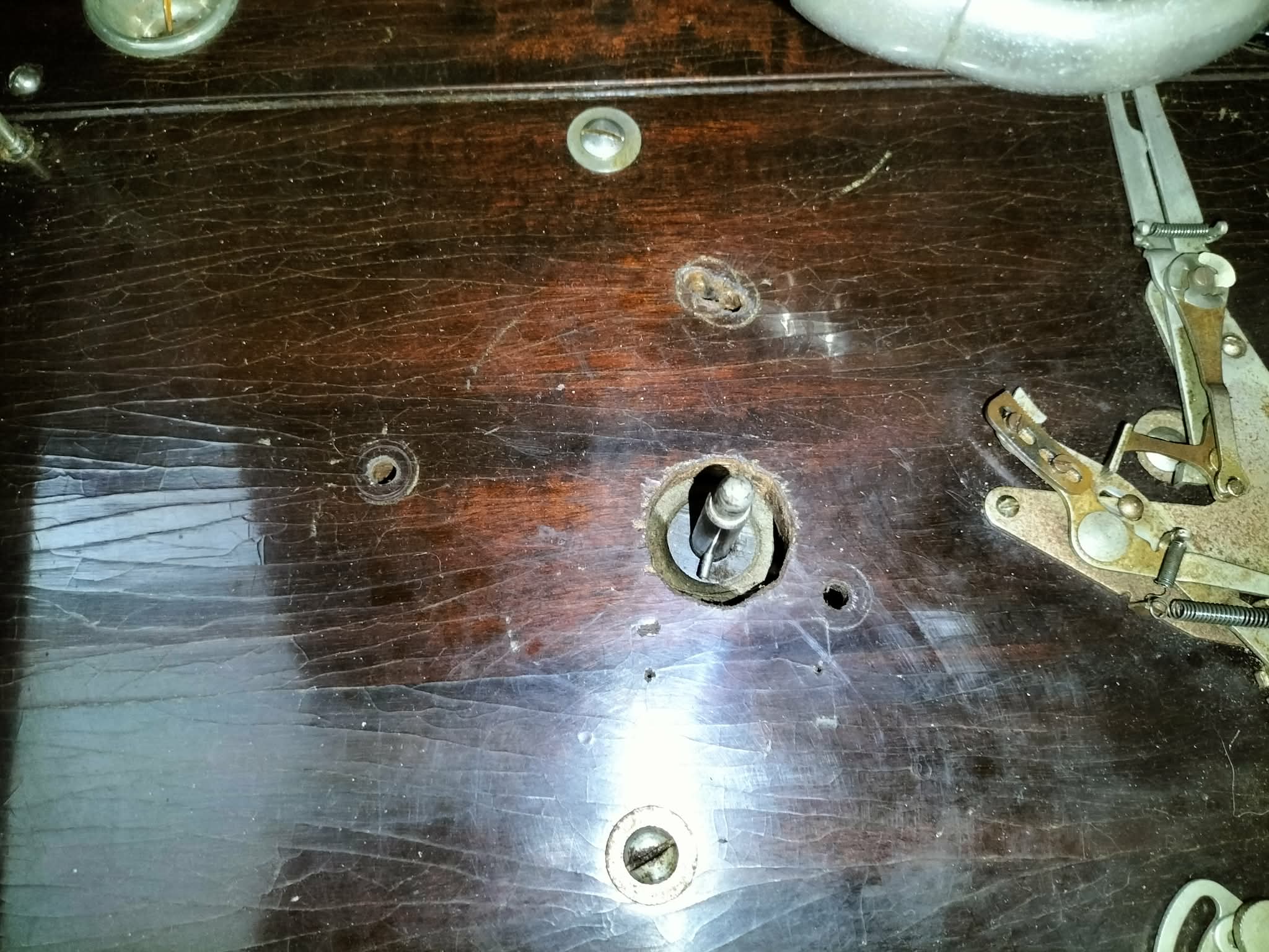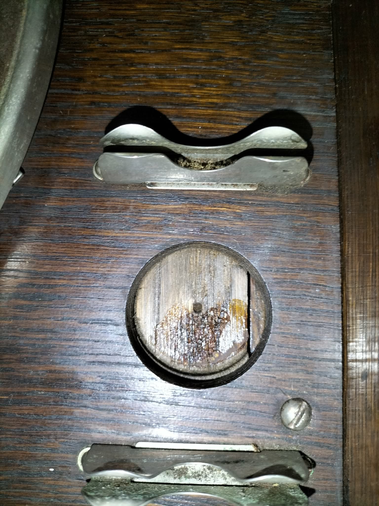 (1) The wood cabinet may have been refinished as it's unusually bright. It does not have that kind of tiger stripes as I usually see on HMV 130 to be confident that those are made of oak. This rather has consistent parallel patterns. Is it more likely to be mahogany wood? Was this sensible and was HMV 130 offered in mahogany wood?