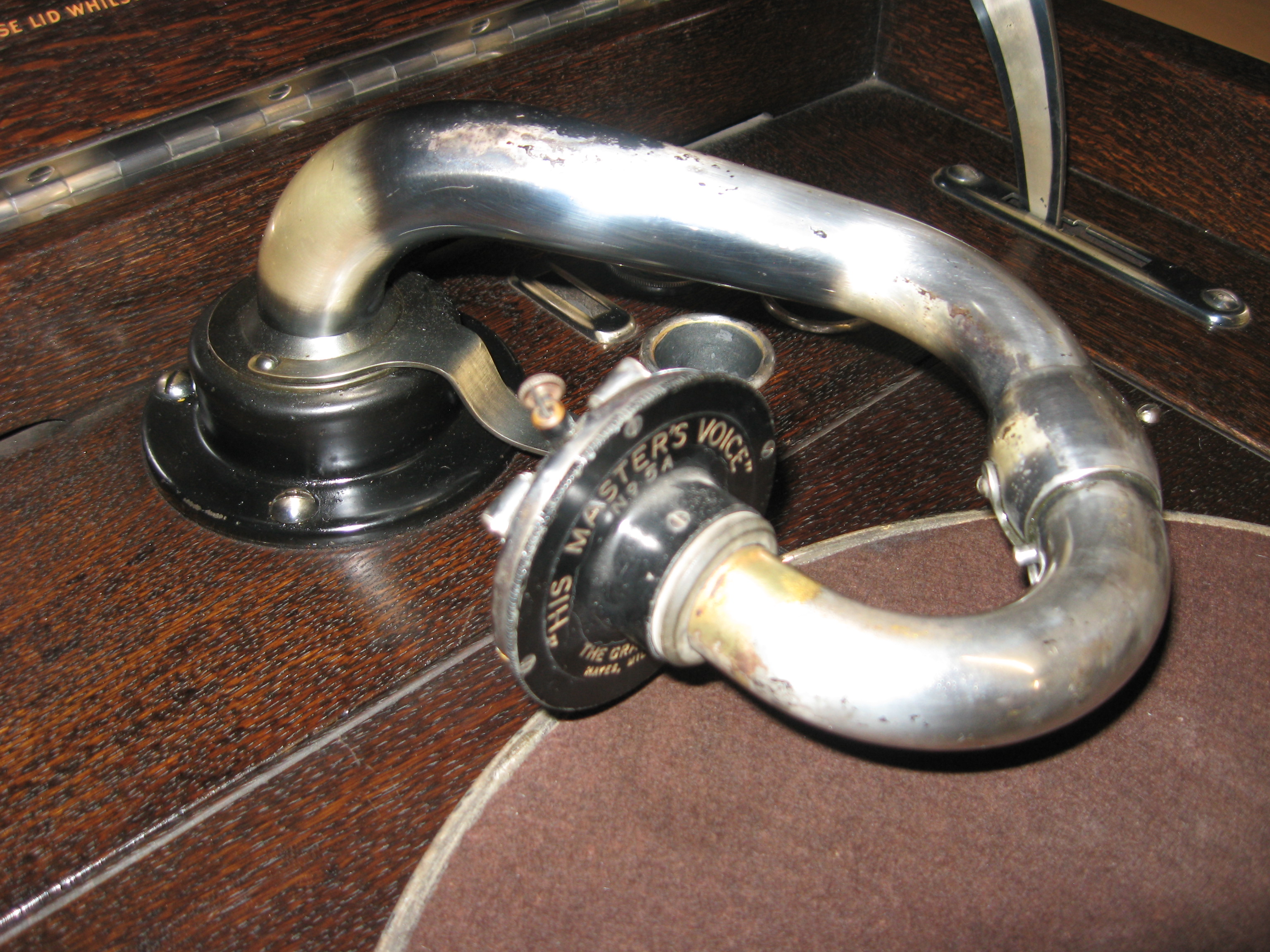 The soundbox you have pictured is in the Florentine Bronze finish used on some late HMV cabinet models such as the 158.