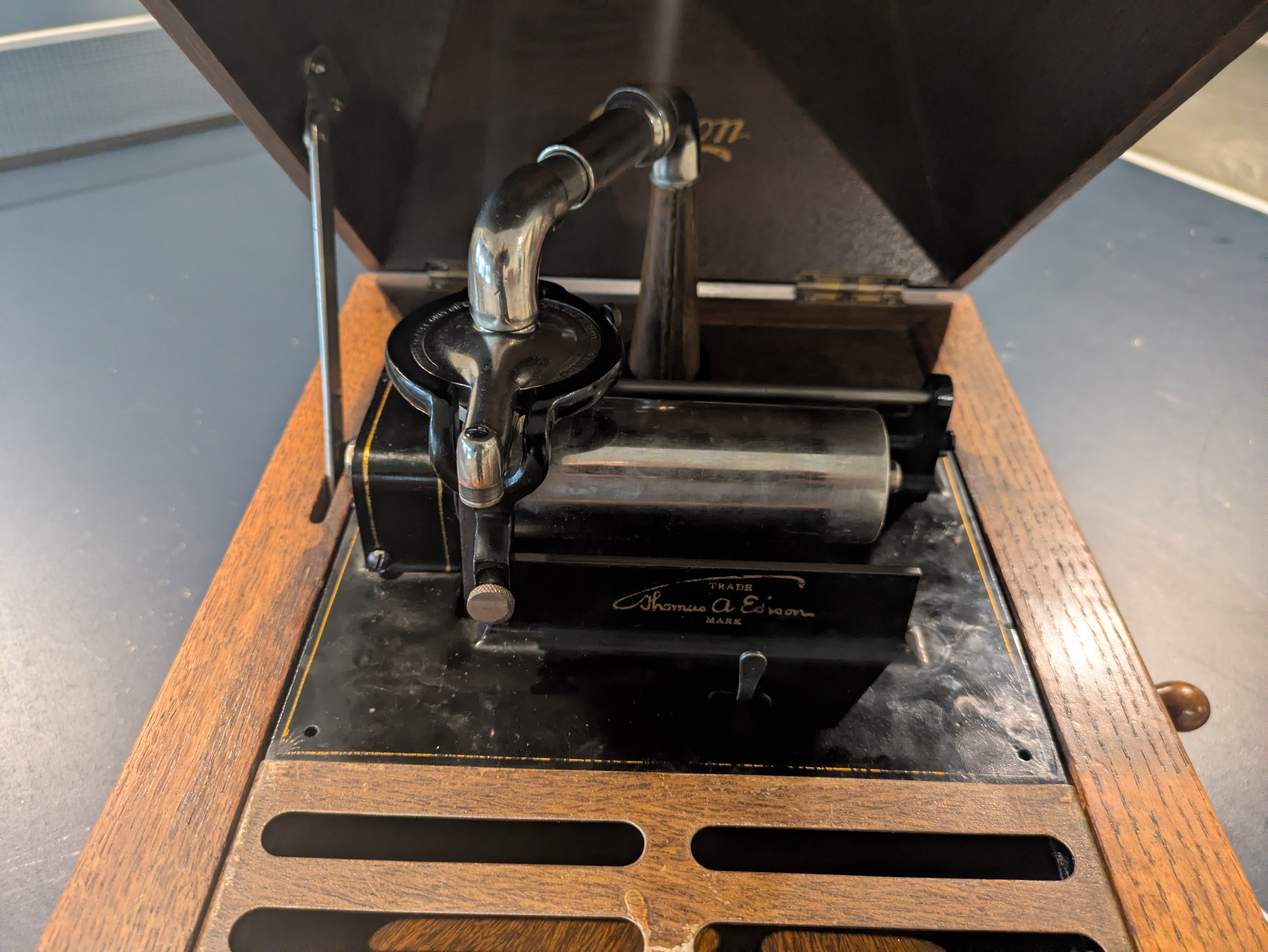 Edison Amberola X - A very hard machine to find. The X was initially a failure, using an underpowered GEM motor. Edison improved it several times, then came out with the DX, using a Fireside motor. The X's didn't sell well at all, making them seldom found today. This is a later X and plays well through a 4 minute cylinder. Super nice looking, complete. Not very common. A collector machine for sure. $475.00